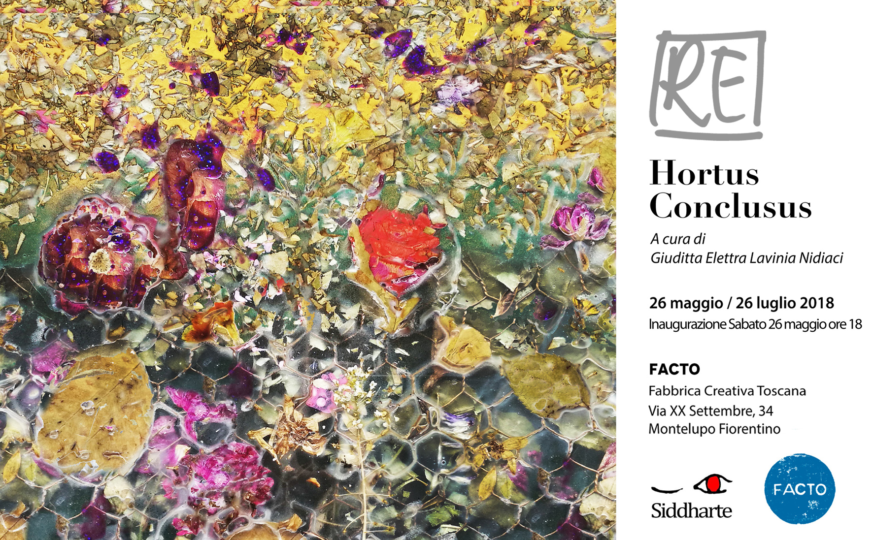 Hortus Conclusus – mostra personale di RE a cura di Giuditta Elettra Lavinia Nidiaci – è l’evento che sabato 26 maggio alle ore 18:00 inaugurerà il nuovo spazio culturale FACTO di Montelupo Fiorentino. Nell’innovativa struttura – destinata al coworking artistico e culturale – sarà allestito il percorso espositivo che approfondisce il tema del “giardino recintato”. Dieci le opere create da RE con la particolare pratica pittorica del reverse on glass, tecnica divenuta un “marchio di fabbrica” della sua cifra stilistica.