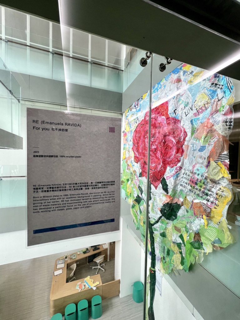 La grande installazione site-specific “For You”, realizzata da RE (Emanuela Ravidà) a Taiwan è stata collocata in modo permanente all’interno della Sustainability Ark di Taitung, una struttura di educazione ambientale istituita dal Taitung County Environmental Protection Bureau e progettata sulla base degli “Obiettivi di sviluppo sostenibile” (SDG) delle Nazioni Unite.