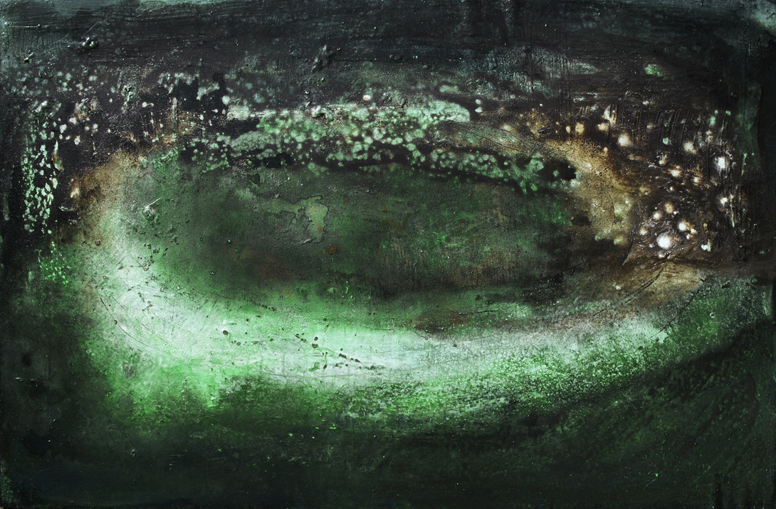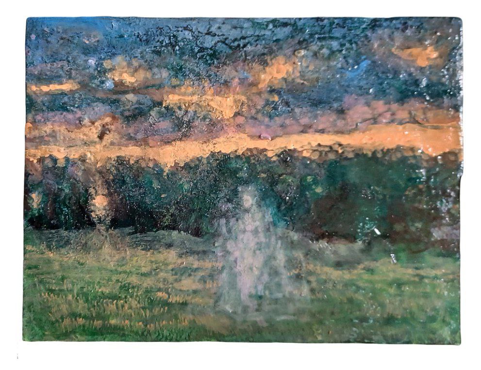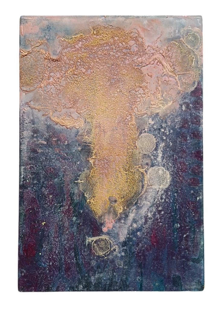 Il pensiero che infranse il crepuscolo | mixed media and shellac on wood
