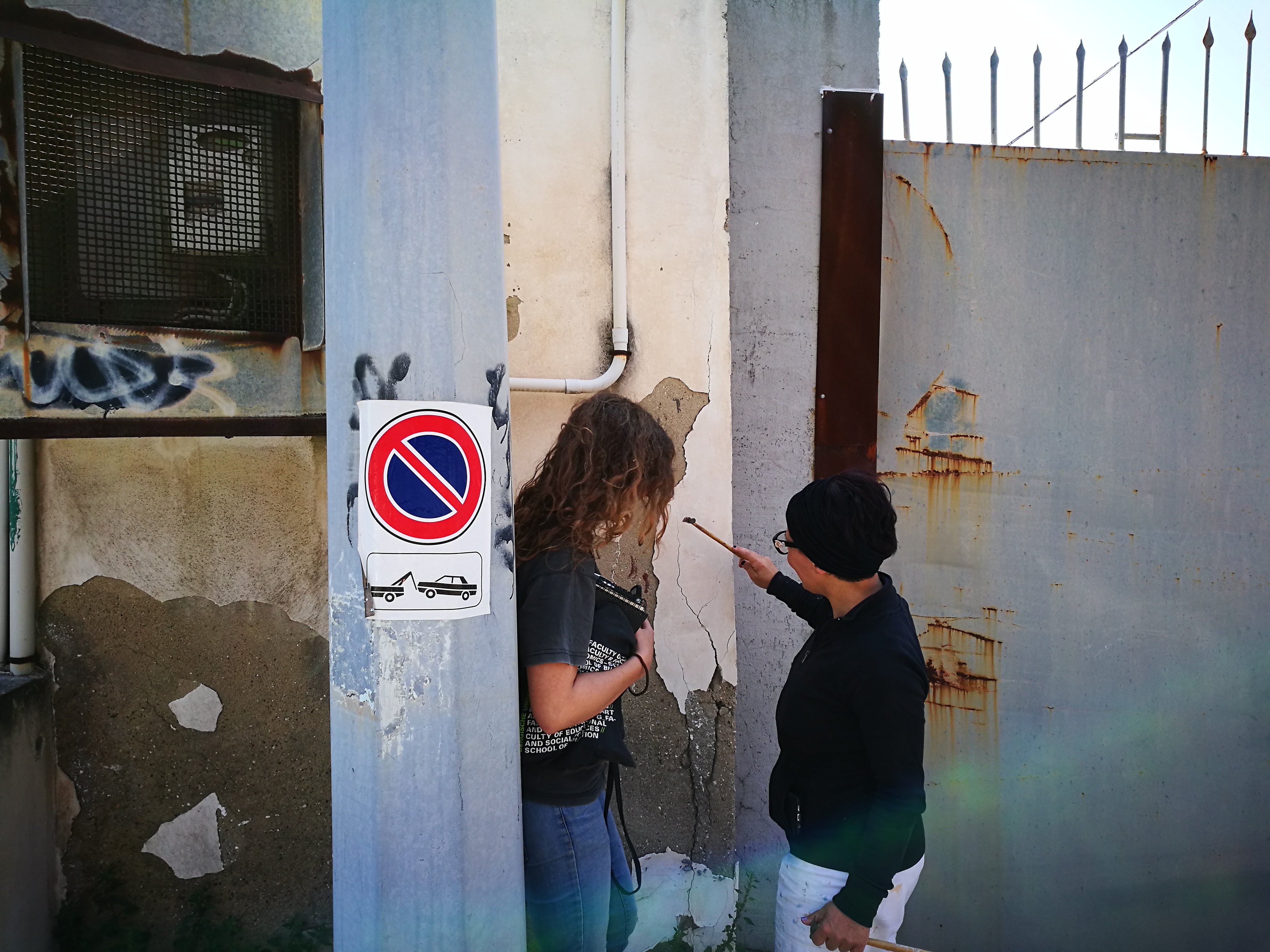 Ricordo con amarezza una delle interviste fatte al Cavaliere e di quanto fosse rammaricato per il trattamento ricevuto dai suoi concittadini. La sua era una continua e solitaria corsa contro il tempo: costruire e dipingere per poi vedere tristemente nel giorno seguente le sue creature distrutte o cancellate. Ho provato a mettermi nei suoi panni. Trovo orribile opprimere, in questa vile modalità, la voglia di vivere e di sentirsi necessari per questo luogo. Cammarata accudiva l’animo di Maregrosso e della sua gente con i suoi “strumenti”, con i suoi colori e con le sue creature. Tutte le volte che si svegliava, scovando parte del suo mondo distrutto, non si perdeva d’animo e ricominciava; perché sapeva in cuor suo che la gente prima o poi lo avrebbe in qualche modo compreso. Si proiettava verso le generazioni future considerandole la salvezza di questa triste società della quale è stato testimone. Adesso, io come altri, sono consapevole che siamo noi il futuro che il caro Cavaliere attendeva da tempo. Adesso, non ha più mani e né un corpo per difendersi, ma lui, come questo vecchio muro che pian piano si scopre, continua a vivere. Come se fosse ancora vivo e attivo, riemergerà nella sua opera. Come tutte quelle volte che svegliandosi si ritrovava a riempire quei vuoti che la gente lasciava col proprio passaggio. Saranno le mie mani che, per lui, cacceranno via quel bianco tanto temuto. Poco importa se al termine del restauro non troverò il muro in gran parte dipinto. Il mio intervento è il gesto. La mia non sarà un’opera pittorica ma sarà l’azione del suo risveglio”.