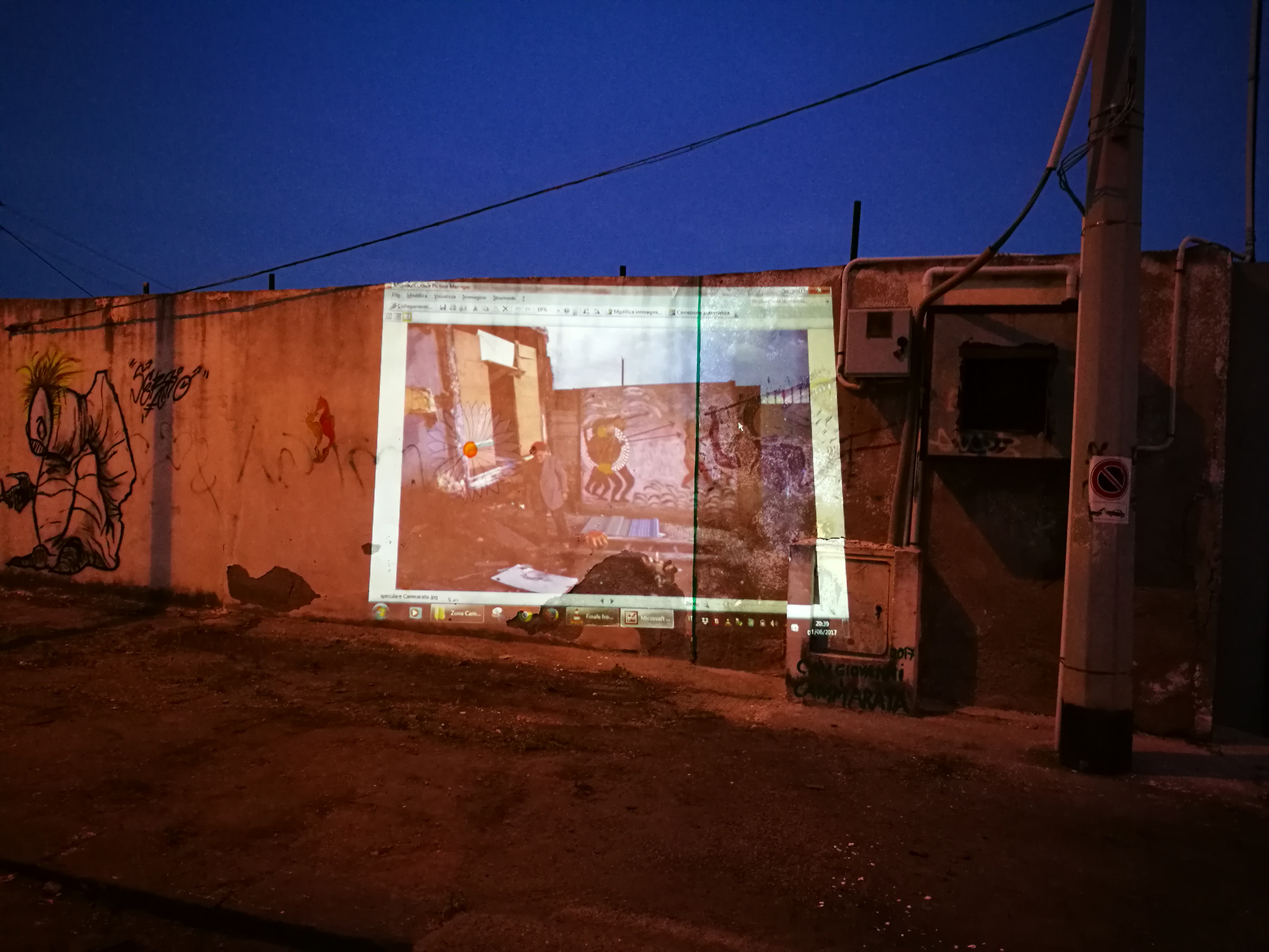“…un eccezionale ritrovamento di un Murales di Giovanni Cammarata sepolto da un intonaco bianco. Il restauro dell’artista RE è prezioso per almeno due motivi. Ci fa capire la portata visionaria di Cammarata e restituisce archeologicamente alla città quello che a ben vedere è il murales più antico di Messina. In una fase storica caratterizzata da una grande diffusione della street art, il murales rappresenta una genealogia cittadina che riporta l’arte di strada alle sue origini: il quartiere”.